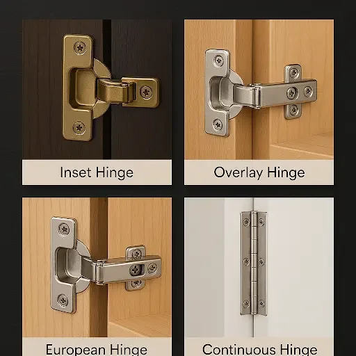 Inset hinges are used when the cabinet door fits flush with the frame. They can be concealed or decorative, and they require precise installation.